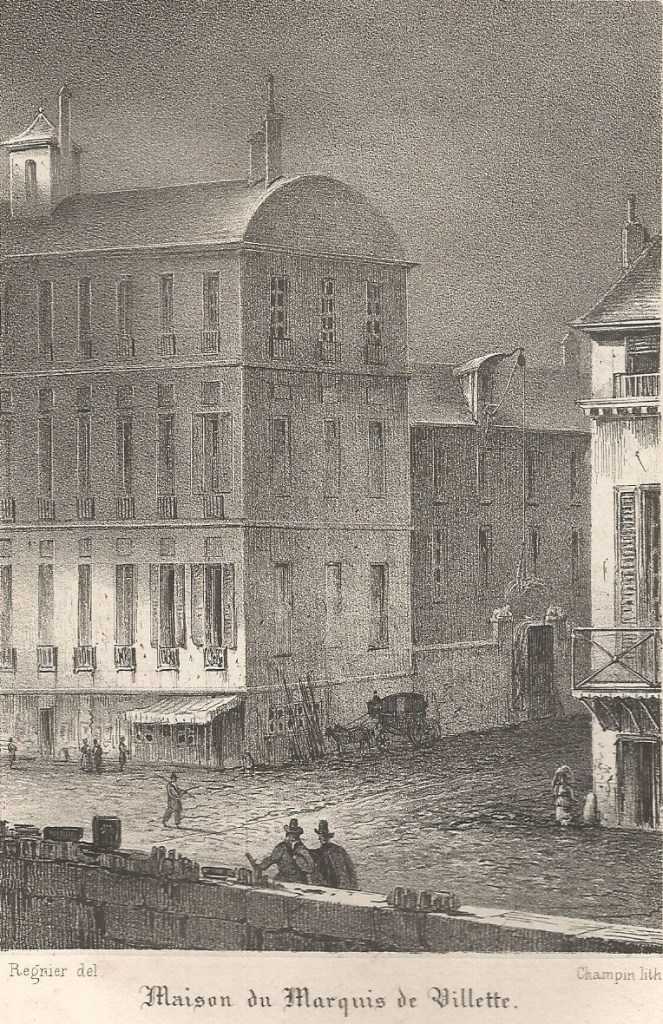 Cette maison aurait été construite au XVIIe siècle par Simon Plastrier de La Croix, le beau-père du grand trésorier de France Nicolas de Bragelongne, qui lui laissa son nom. La présidente de Bernières y loua un appartement, où elle reçut Voltaire dans les années 1720. La marquise de Grammont l’acquit trente ans plus tard, pour le revendre en viager à Charles de Villette, c’est-à-dire pour la durée de sa vie, en 1766. Le marquis y fit faire de coûteux embellissements, sous la direction de Charles de Wailly et de Bernard Poyet. Il fit notamment ajouter un belvédère auquel on accédait au moyen d’une chaise volante, préfiguration de nos ascenseurs. Voltaire y mourut le 30 mai 1778. L’hôtel constitua une étape importante du cortège qui conduisit ses cendres jusqu’au Panthéon le 11 juillet 1791. Villette s’y éteignit le 7 juillet 1793.