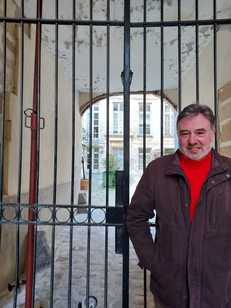 L’auteur devant l’hôtel de Voyer d’Argenson, demeure du jeune marquis de Villette